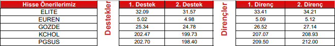 PGSUS : Takip ettiğimiz önemli destek bölgesi üzerinde kapanış yaptığını görmekteyiz. 204.30 seviyesi üzerinde yukarı yönlü fiyat hareketlerinin olası olabileceğini düşünmekteyiz. Olası geri çekilmelerde 206.00 seviyesini ara destek olarak takip etmekteyiz. Yukarıda 210.90 – 214.00 ve 216.70 seviyelerini sıralı hedefler olarak takip etmekteyiz.