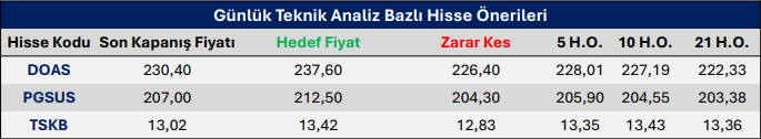Bulls Yatırım Günlük Takip Listesi