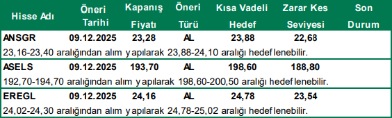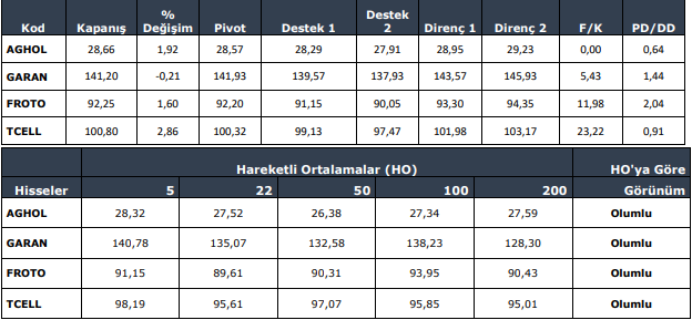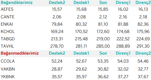 AEFES: Takip ettiğimiz önemli destek bölgesi üzerinde kapanış yaptığını görmekteyiz. 15.54 seviyesi üzerinde yukarı yönlü fiyat hareketlerinin olası olabileceğini düşünmekteyiz. Olası geri çekilmelerde 15.74 seviyesini ara destek olarak takip etmekteyiz. Yukarıda 16.25 ve 16.55 seviyelerini sıralı hedefler olarak takip etmekteyiz.