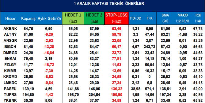 Haftalık Hisse Önerileri / A1 Capital – (1-5 Aralık 2025)