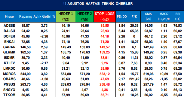 Haftalık Hisse Önerileri / A1 Capital – (11-15 Ağustos 2025)