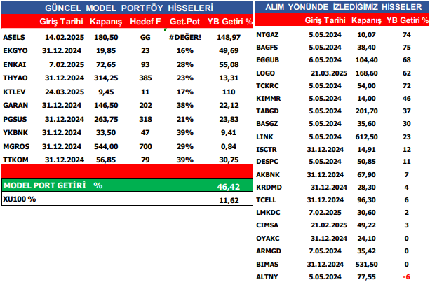 Orta ve Uzun Vadeli Model Portföy ve Yakın İzleme Hisselerimiz