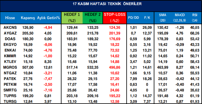 Haftalık Teknik Hisse Önerileri