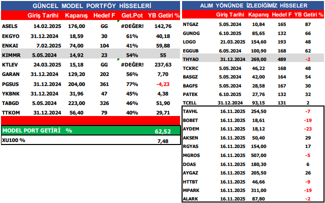 Orta ve Uzun Vadeli Model Portföy ve Yakın İzleme Hisselerimiz