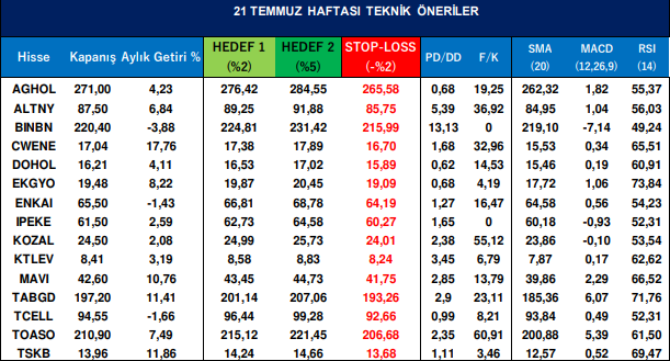 Haftalık Hisse Önerileri / A1 Capital – (21-25 Temmuz 2025)