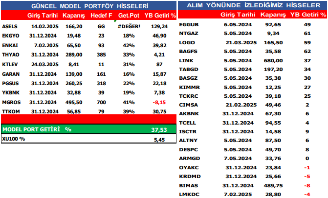 Orta ve Uzun Vadeli Model Portföy ve Yakın İzleme Hisselerimiz