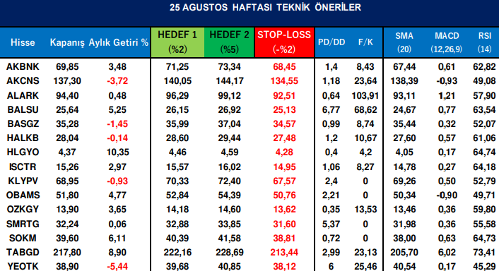 Haftalık Hisse Önerileri / A1 Capital – (25-29 Ağustos 2025)
