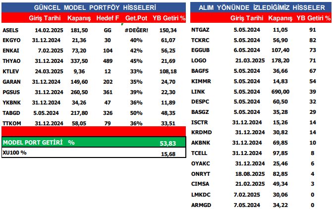 Orta ve Uzun Vadeli Model Portföy ve Yakın İzleme Hisselerimiz