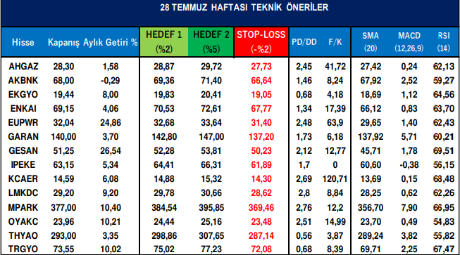 Haftalık Hisse Önerileri / A1 Capital – (28 Temmuz – 1 Ağustos 2025)