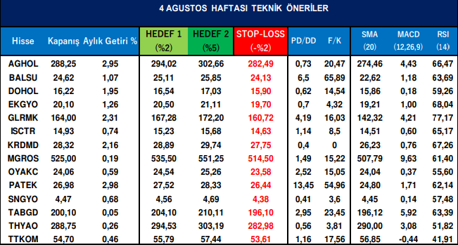 Haftalık Hisse Önerileri / A1 Capital – (4-8 Ağustos 2025)