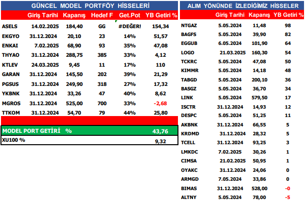 Orta ve Uzun Vadeli Model Portföy ve Yakın İzleme Hisselerimiz