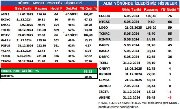 Orta ve Uzun Vadeli Model Portföy ve Yakın İzleme Hisselerimiz