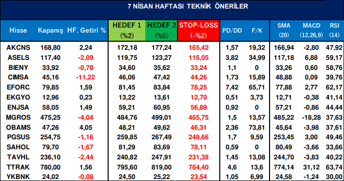 Haftalık Hisse Önerileri / A1 Capital – (7-11 Nisan 2025)