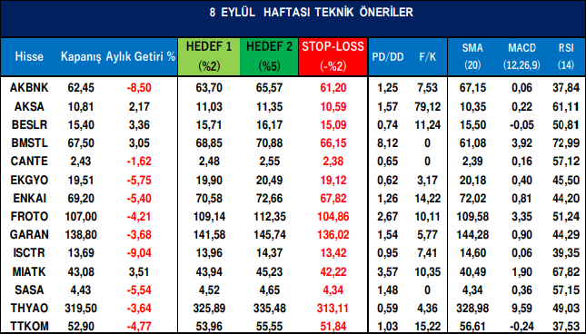 Haftalık Hisse Önerileri / A1 Capital – (8-12 Eylül 2025)