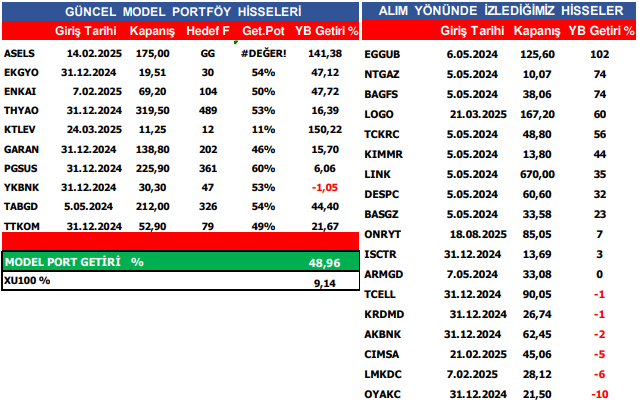 Orta ve Uzun Vadeli Model Portföy ve Yakın İzleme Hisselerimiz