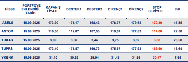 Kısa vadeli öneri listemize ASELS, ASTOR, TUKAS, TUPRS ve YKBNK pay senetlerini dahil ediyoruz.