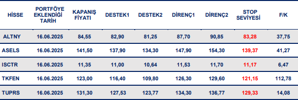 Kısa vadeli öneri listemize ALTNY, ASELS, ISCTR, TKFEN ve TUPRS pay senetlerini dahil ediyoruz.