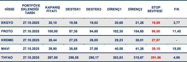 Kısa vadeli öneri listemize EKGYO, FROTO, KRDMD, MAVI ve THYAO pay senetlerini dahil ediyoruz.