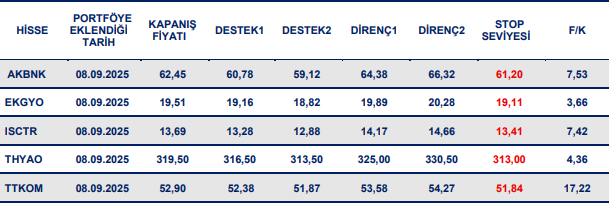 Kısa vadeli öneri listemize AKBNK, EKGYO, ISCTR, THYAO ve TTKOM pay senetlerini dahil ediyoruz.