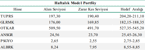 Kaynak: ALB Yatırım Haftalık Model Portföy