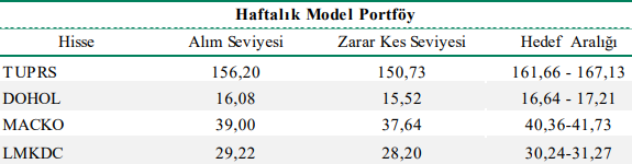 Kaynak: ALB Yatırım Haftalık Model Portföy