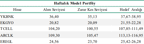 Kaynak: ALB Yatırım Haftalık Model Portföy