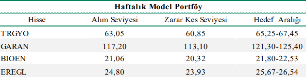 Kaynak: ALB Yatırım Haftalık Model Portföy