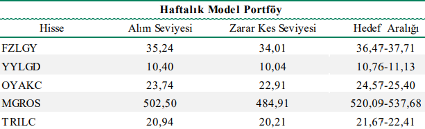 Kaynak: ALB Yatırım Haftalık Model Portföy