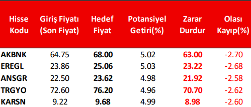 *Haftalık Model Portföyümüz teknik analize göre hazırlanmış olup; temel veriler dikkate alınmamıştır.