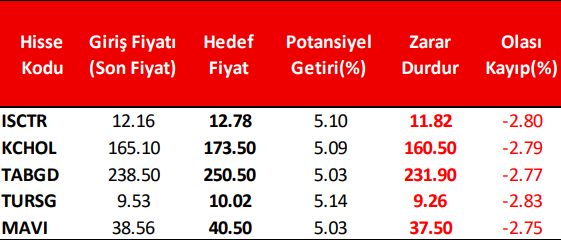 *Haftalık Model Portföyümüz teknik analize göre hazırlanmış olup; temel veriler dikkate alınmamıştır.