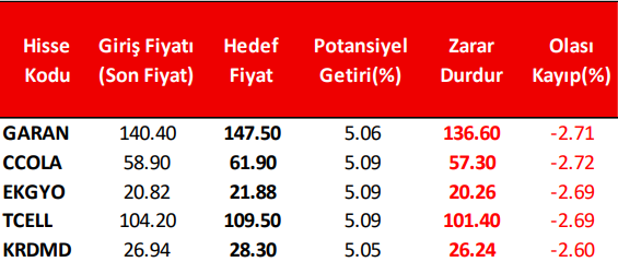 *Haftalık Model Portföyümüz teknik analize göre hazırlanmış olup; temel veriler dikkate alınmamıştır.