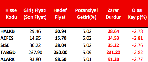 *Haftalık Model Portföyümüz teknik analize göre hazırlanmış olup; temel veriler dikkate alınmamıştır.