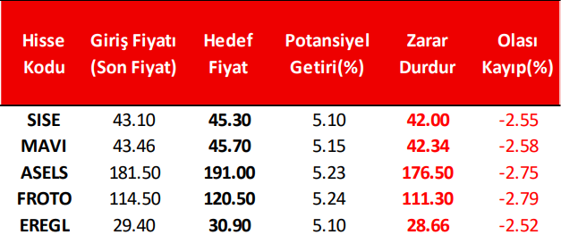 *Haftalık Model Portföyümüz teknik analize göre hazırlanmış olup; temel veriler dikkate alınmamıştır.