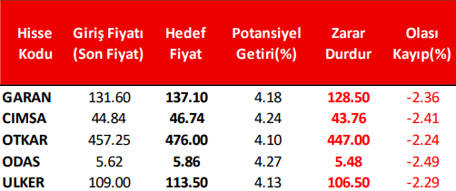 *Haftalık Model Portföyümüz teknik analize göre hazırlanmış olup; temel veriler dikkate alınmamıştır.