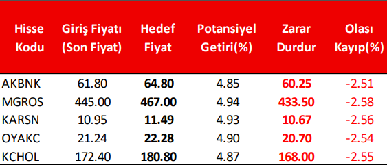 *Haftalık Model Portföyümüz teknik analize göre hazırlanmış olup; temel veriler dikkate alınmamıştır.