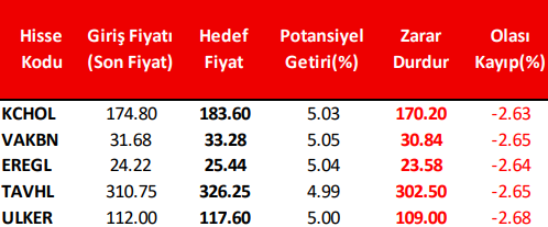 *Haftalık Model Portföyümüz teknik analize göre hazırlanmış olup; temel veriler dikkate alınmamıştır.