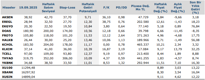 Haftalık Hisse Önerileri / Anadolu Yatırım – (22-26 Eylül 2025)