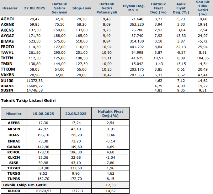 Haftalık Hisse Önerileri / Anadolu Yatırım – (25-29 Ağustos 2025)