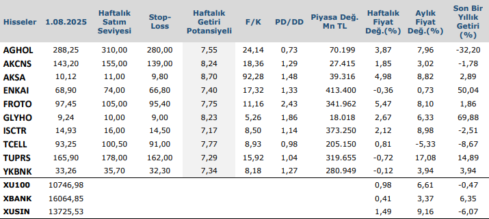 ABD’de geçtiğimiz hafta ABD ile AB arasında imzalanan ticaret anlaşmasıyla çoğu Avrupa malına uygulanan tarife %30’dan %15’e indirilirken, Çin’le yürütülen görüşmelerin Ağustos ortasındaki tarife süresinin üç ay uzatılması yönünde ilerlediği bildirildi. Öte yandan Trump, Hindistan, Kanada, Tayvan ve Güney Afrika için yeni tarifeleri yürürlüğe koyarken, Meksika’ya 90 günlük süre tanındı. Çarşamba günü Fed faiz oranlarını sabit tuttu, ancak iki üyenin 25 baz puanlık faiz indirimi talebi karara muhalefet etmesi dikkat çekti. Başkan Powell, Eylül için karar alınmadığını belirtirken, Trump güçlü gelen büyüme (%3) ve istihdam verileri sonrası Fed’e faiz indirimi çağrısını yineledi. Temmuz ayı Conference Board (CB) Tüketici Güveni verisi 97,2 ile hem 95,2 olan önceki seviyeyi hem de 95,9’luk beklentiyi aşarak tüketici iyimserliğinde belirgin bir artışı işaret etti. Öte yandan, Haziran ayı JOLTS verisine göre açık iş pozisyonları 7,77 milyondan 7,44 milyona gerileyerek 7,5 milyonluk beklentinin altına indi; bu durum, şirketlerin artan belirsizlik nedeniyle işe alım konusunda daha temkinli davrandığını gösteriyor. Temmuz ayında özel sektör istihdamı ADP verisine göre 104.000 kişi artarken, yıllık maaş artışı %4,4 seviyesinde gerçekleşti. Ekonominin ikinci çeyrekte %3 oranında büyümesi ise ilk çeyrekteki %0,5’lik daralmanın ardından güçlü bir toparlanmaya işaret etti ve beklentilerin üzerinde geldi. Son olarak, haftalık işsizlik başvuruları 1.000 kişi artarak 218.000’e çıktı; bu hafif artışa rağmen iş gücü piyasasının dirençli kaldığı yorumları öne çıkıyor.