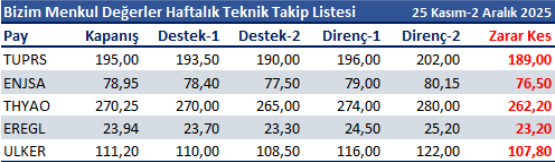 Haftalık Hisse Önerileri / Bizim Menkul – (25 Kasım – 2 Aralık 2025)