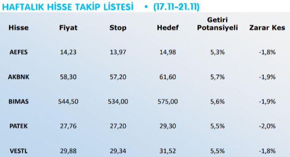 Haftalık Hisse Önerileri / Colendi Menkul – (17-21 Kasım 2025)