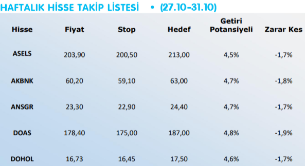 Haftalık Hisse Önerileri / Colendi Menkul – (27-31 Ekim 2025)