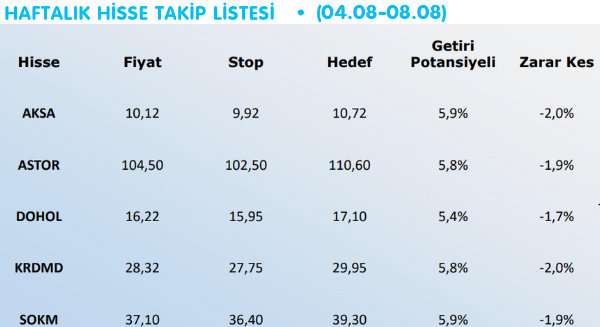 Haftalık Hisse Önerileri / Colendi Menkul – (4-8 Ağustos 2025)