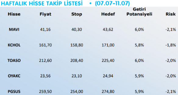 Haftalık Hisse Önerileri / Colendi Menkul – (7-11 Temmuz 2025)