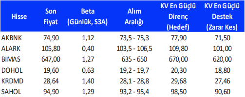 Teknik Takibimizde Olan Hisseler