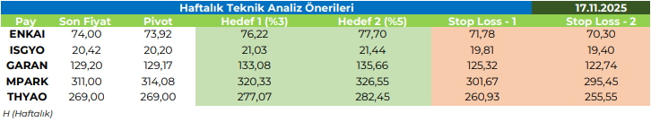 Haftalık Hisse Önerileri / İnfo Yatırım – (17-21 Kasım 2025)