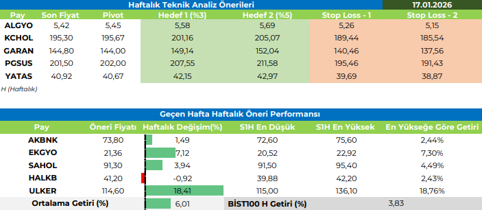 Haftalık Teknik Analiz Önerileri