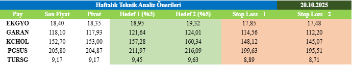 Haftalık Hisse Önerileri / İnfo Yatırım – (20-24 Ekim 2025)
