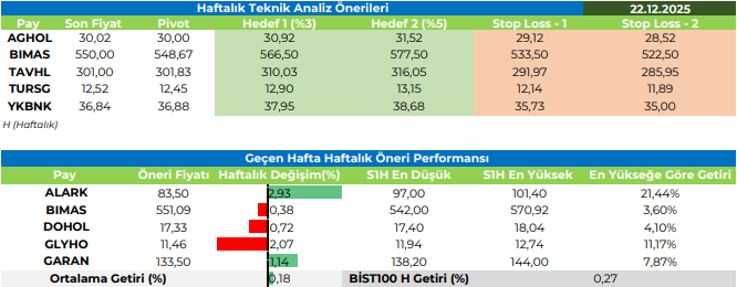 Haftalık Hisse Önerileri / İnfo Yatırım – (22-26 Aralık 2025)