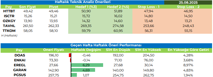 Haftalık Hisse Önerileri / İnfo Yatırım – (25-29 Ağustos 2025)